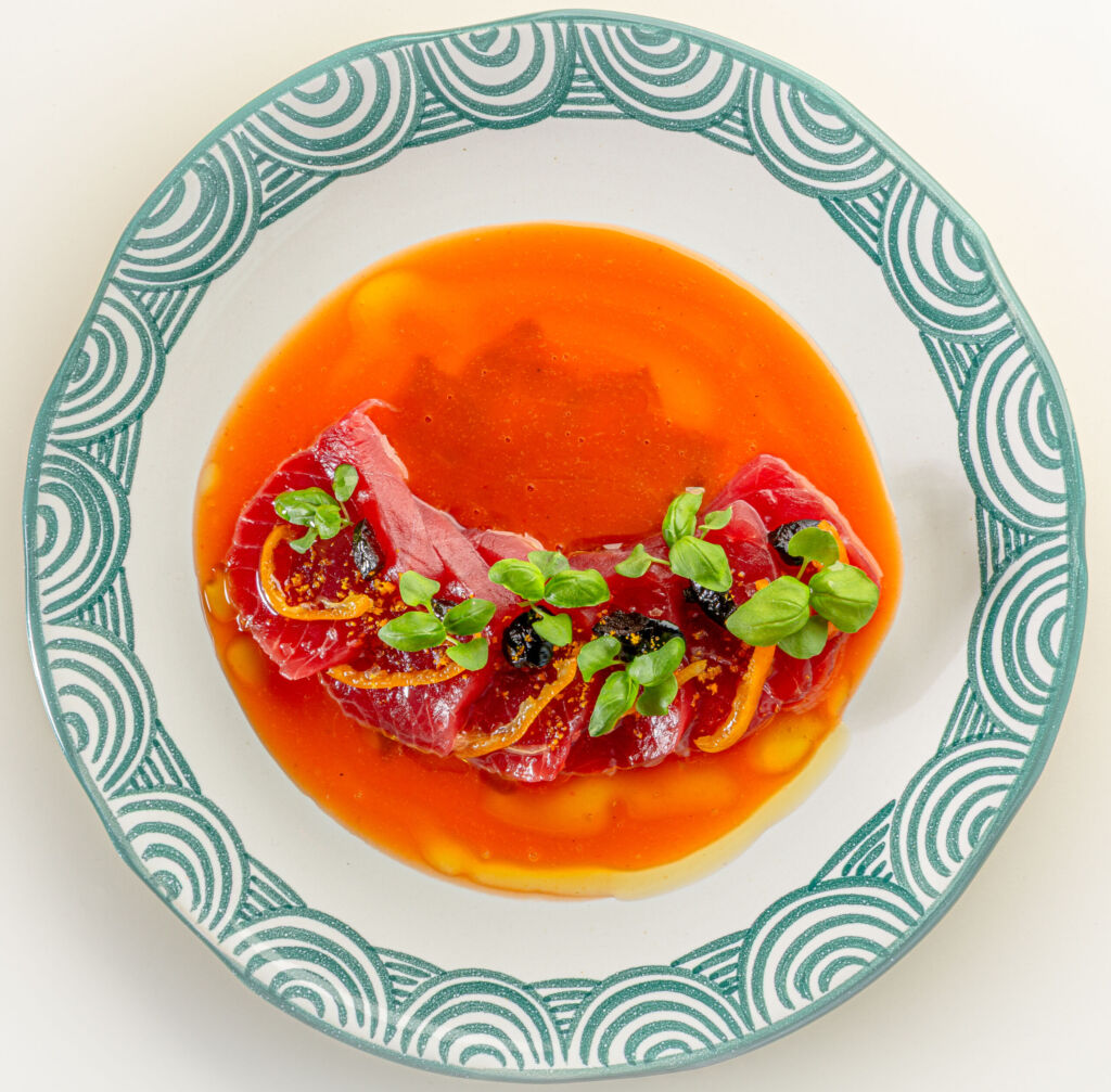 Highlights from the menu include the Fresa Bonita, a savory-meets-sweet vodka cocktail layered with piquillo pepper, saffron, and lemon, finished with a housemade strawberry and pepper fruit leather; the Porron Star Martini, a freezer-chilled, tableside-poured serve featuring Condesa gin, tomato and kiwi-infused fino sherry, and dry vermouth; Apasionada Margarita, with fresh passionfruit; Daliamotxo reimagines the classic kalimotxo with red wine, vermouth, and a house Dr Pepper syrup, offering a nostalgic, soda-fountain twist; and a dedicated Gin & Tonic section pays homage to one of Spain’s most iconic drinking traditions, served in goblets with elaborate garnishes. Sangrias, available by the pitcher and served in goblets, round out the offering with a range of fruit-driven styles designed for sharing.