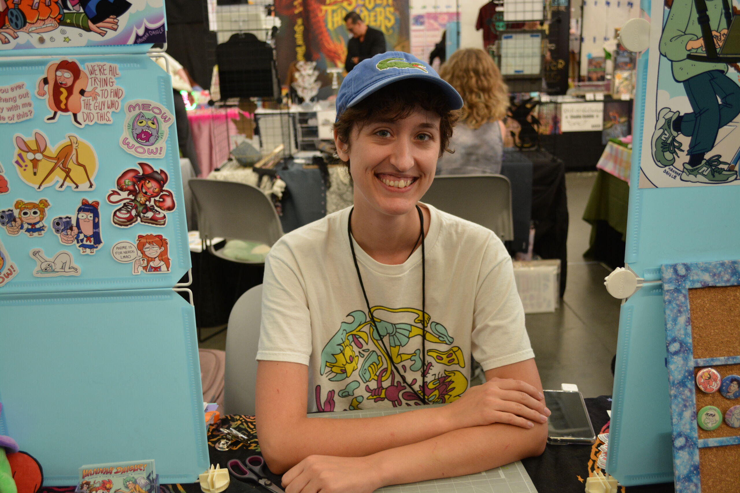 Her table was decked out with comics, prints, and stickers of characters from animation. “I’m really excited because I literally had like a week’s notice of this convention to prepare for,” she said